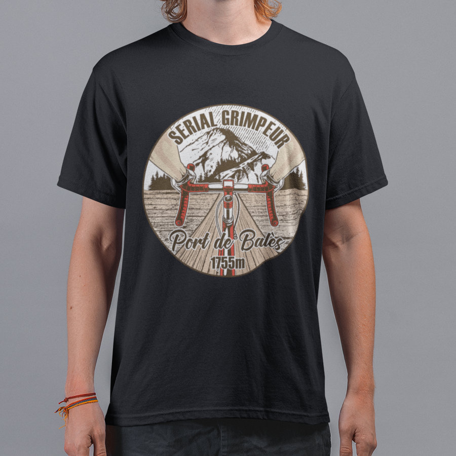 Après avoir vaincu les rampes abruptes de ce géant des Pyrénées, tu mérites de porter ce t-shirt Port de Balès Serial Grimpeur.